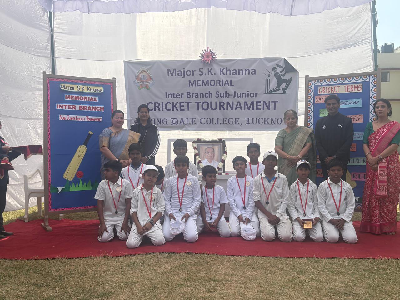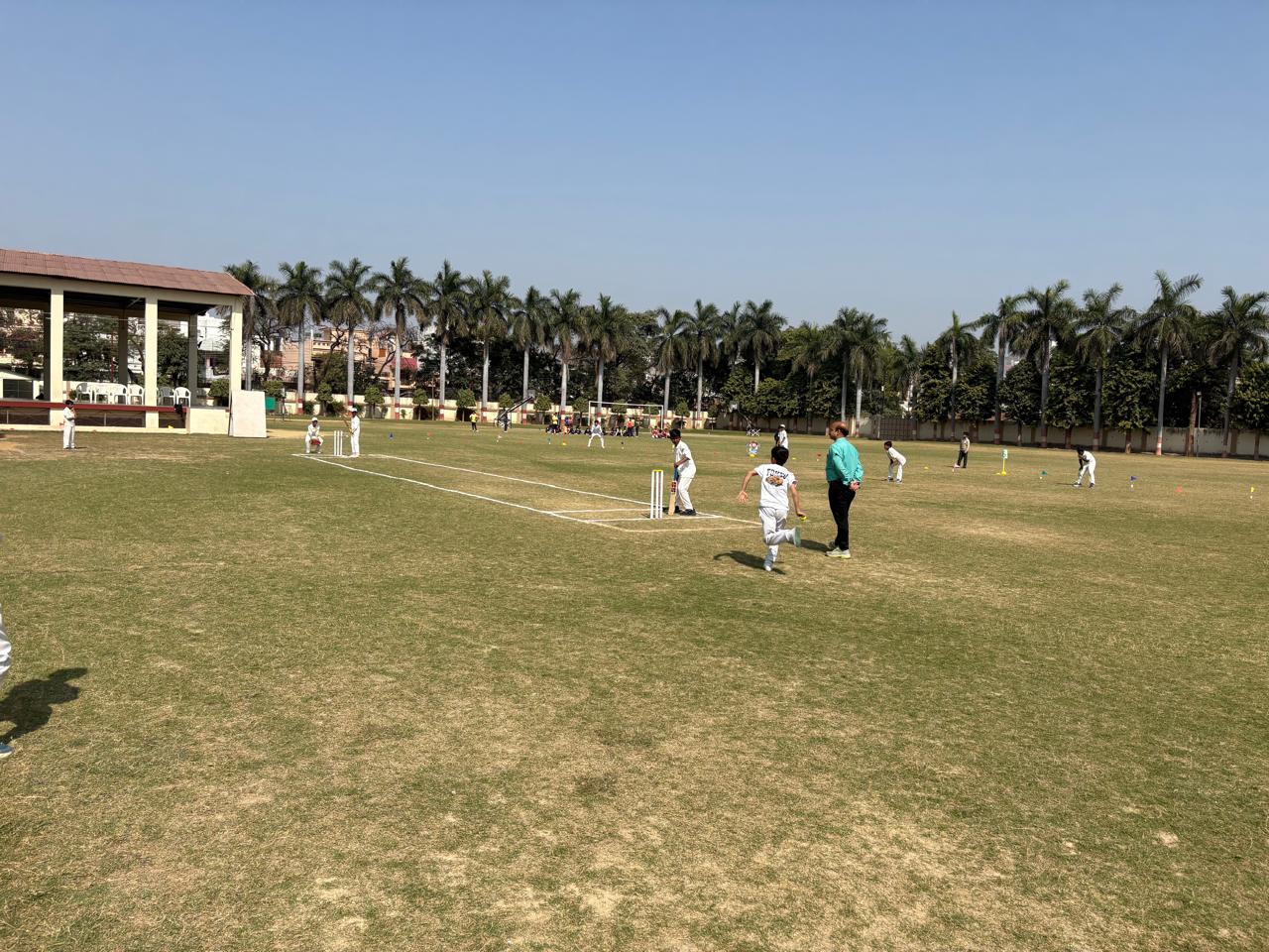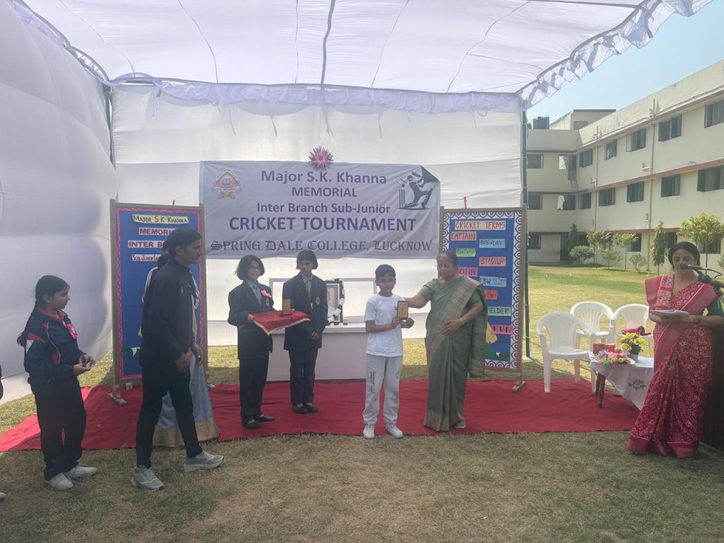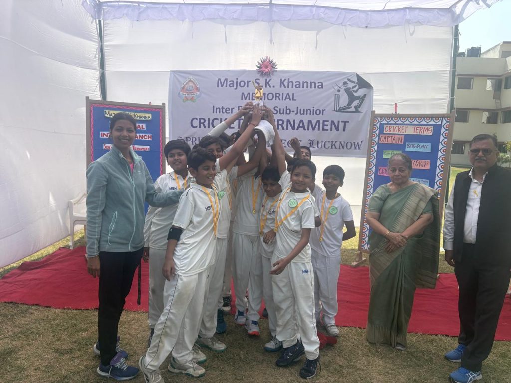 The school organized the Major S.K. Khanna Memorial Inter-Branch Junior Cricket Tournament on 27th February 2026 at the Kanpur Road premises. The event witnessed enthusiastic participation from all three branches — Gomti Nagar, Indira Nagar, and Kanpur Road branch. The tournament commenced with the ceremonial first ball bowled by the Director Mrs. Reeta Khanna, marking a respectful tribute to Major S.K. Khanna. Following the toss, the match began amid loud cheers and vibrant encouragement from students and staff.